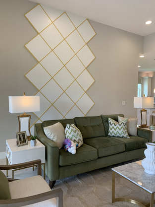 5) Using molding on the wall in unique ways. Molding can also be used to create interest and help full up large walls where art vignettes aren't possible.